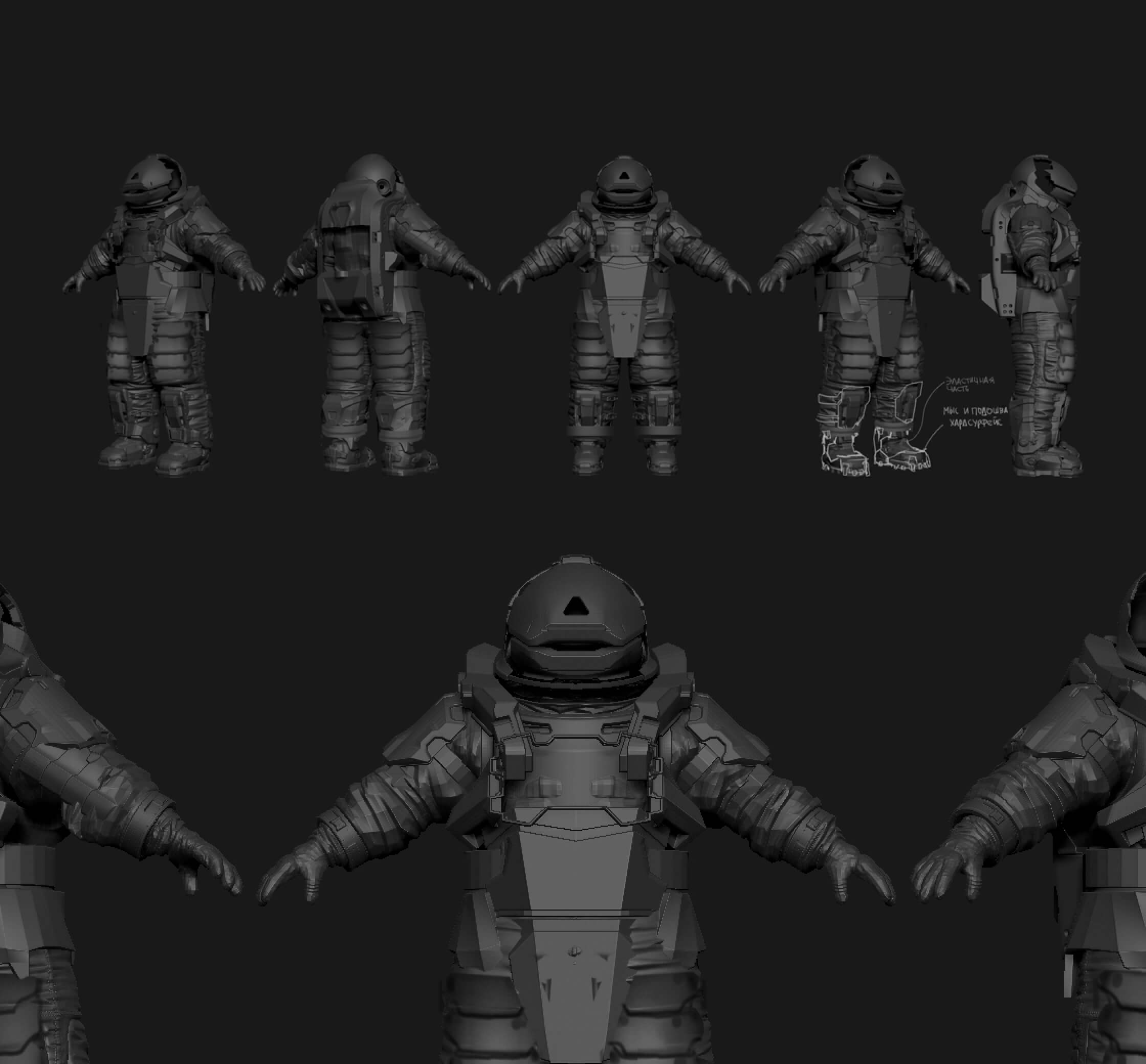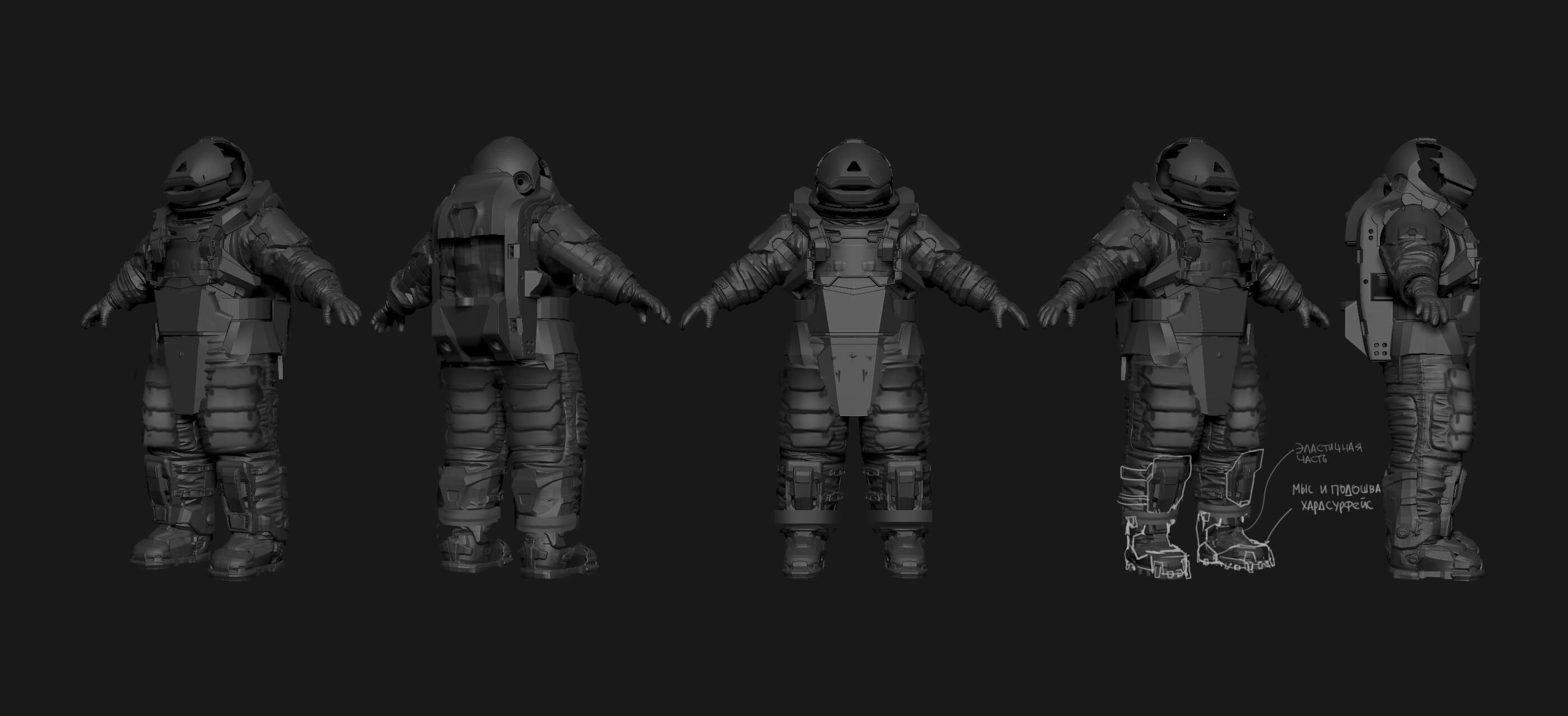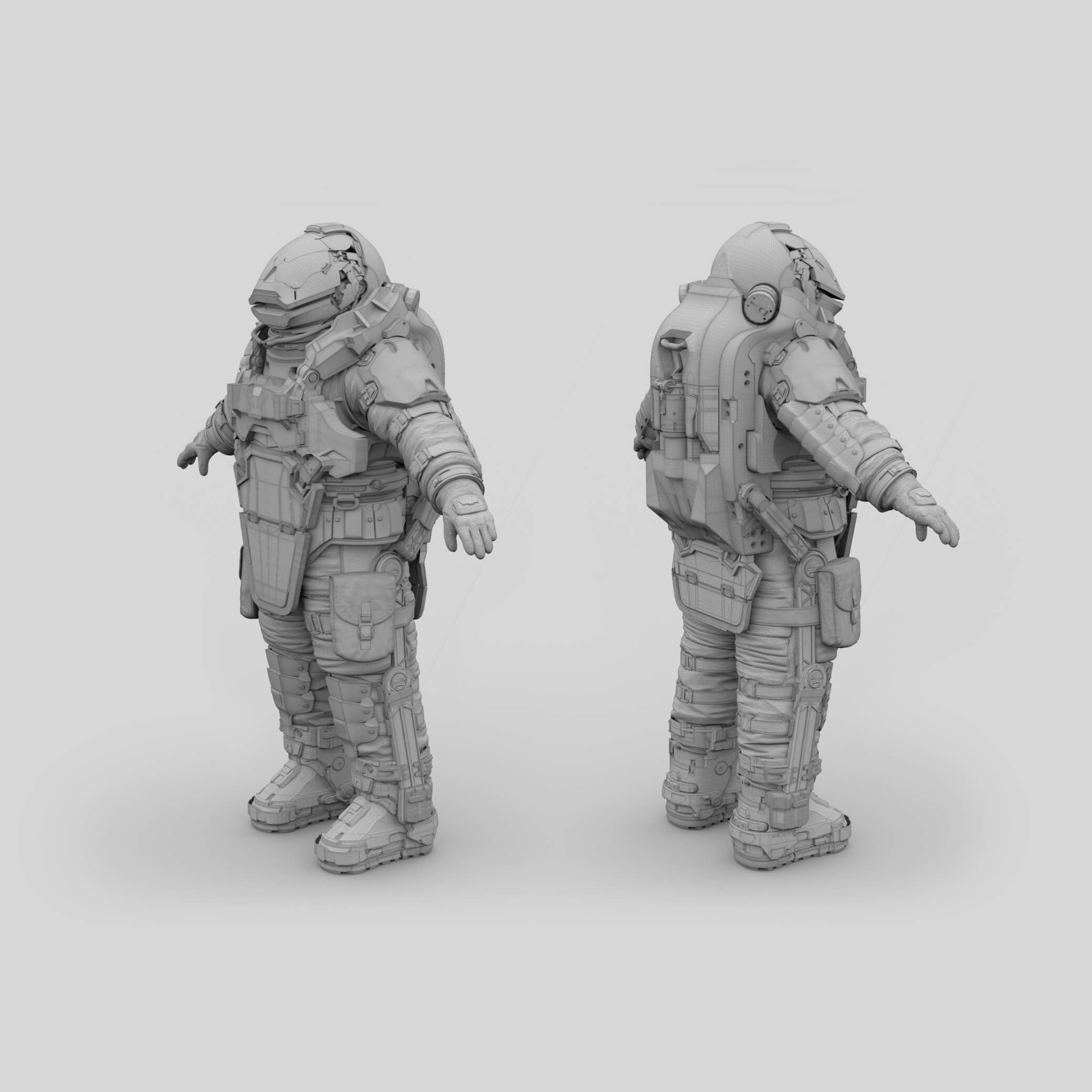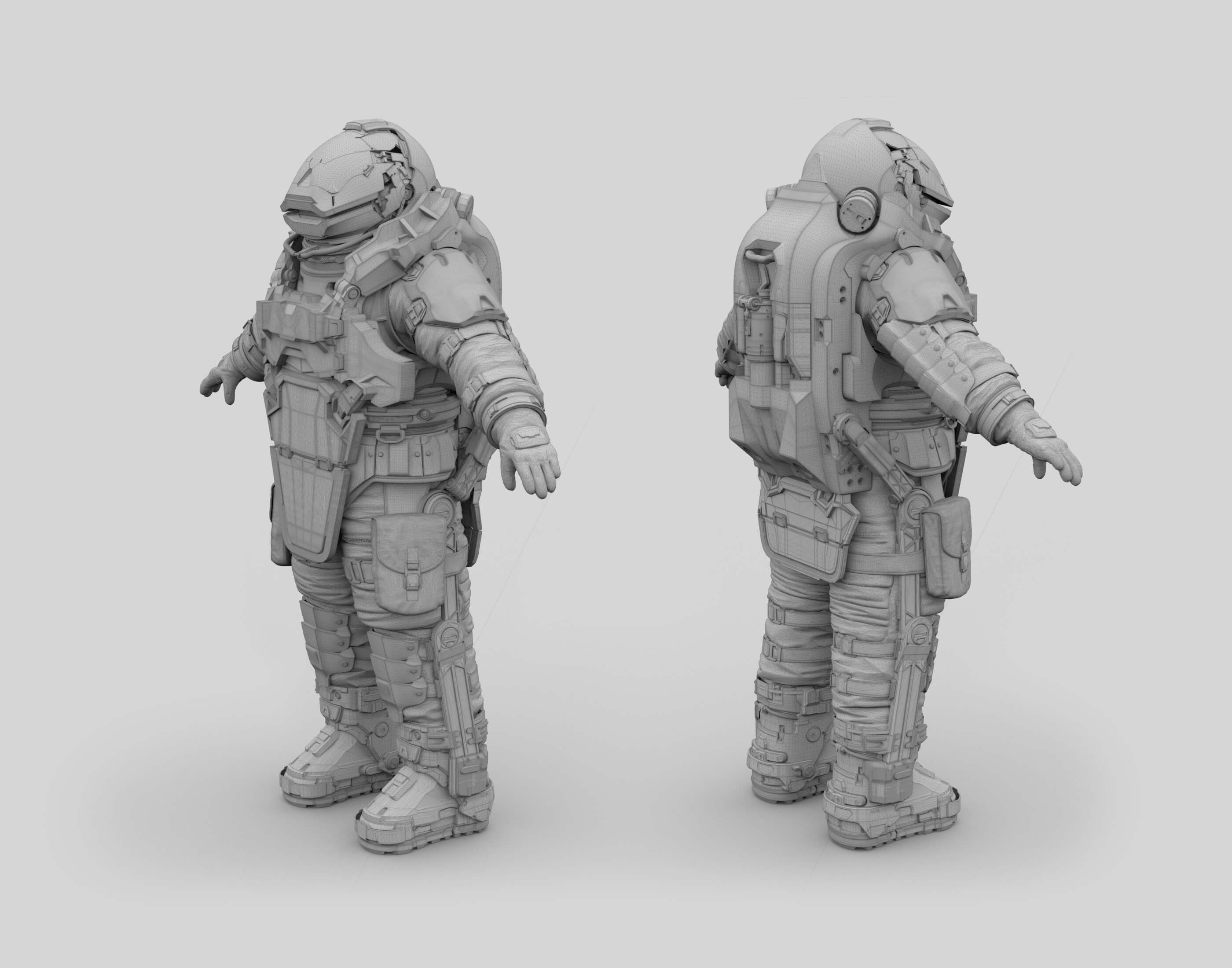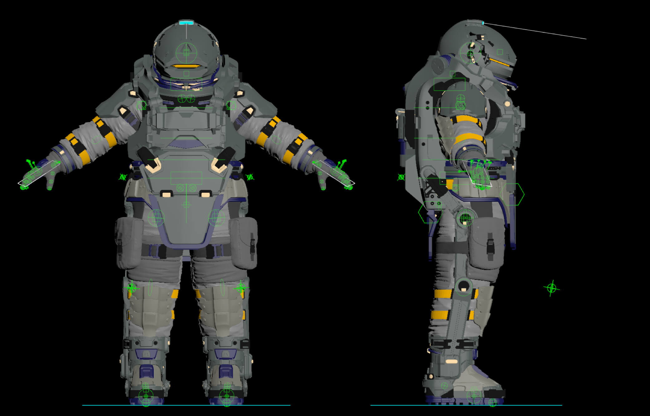↪︎We are 80% done with the suit. The direction is good but some nuance is lacking. We need to bring in one more technical modeler to work out the kinks and finesse the geometry of the suit.