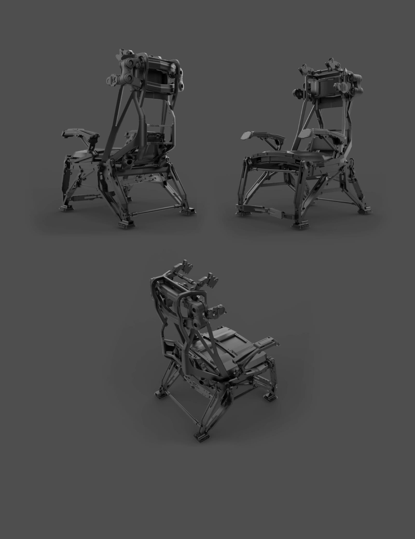 ↪︎Piffle. It looks terrific. I mean, i see what you mean— it could be an outtake from any number of spaceship interiors from alien to the expanse — but dude, the function of the equipment limits the amount of novelty you can inject into design. Sure, you want a distinctive style — but you put too many weird-ass features in a chair and no one will be able to sit in the damn thing.
