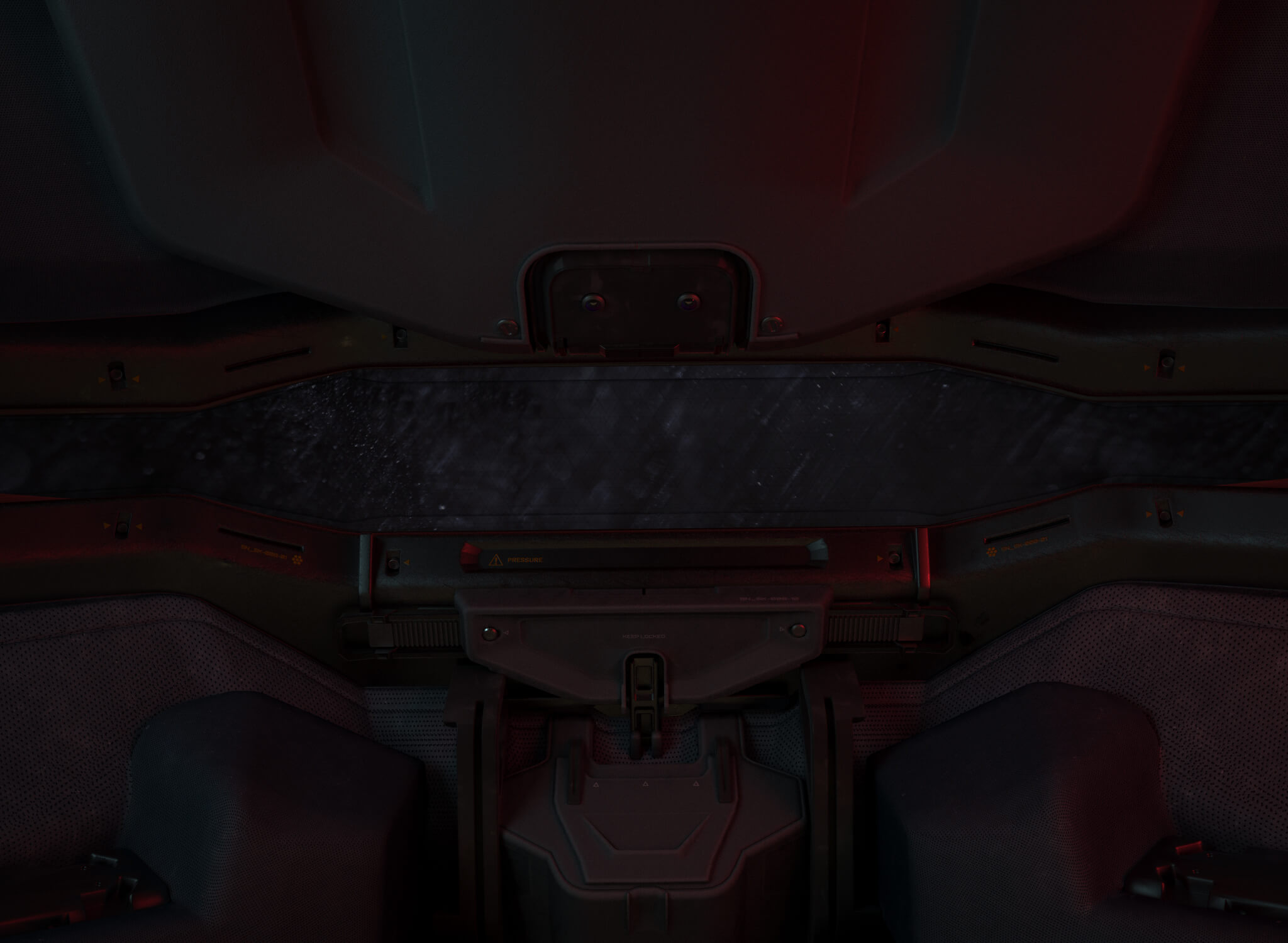 ↪︎Within our team, we ended up calling this asset “frankenshuttle”. The ship model ended up changing hands several times before reaching its final look—too much work was required for just one modeler. One of us would start working on the asset, and then be forced to hand off the work do to other, commercial projects piling up. So the frankenshuttle kept getting passed around between team members.