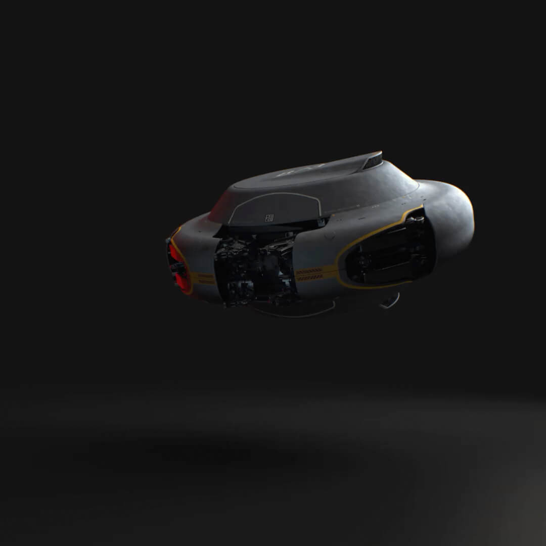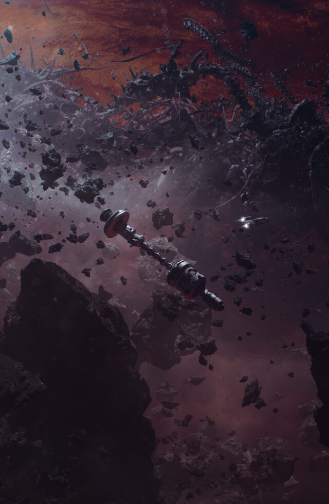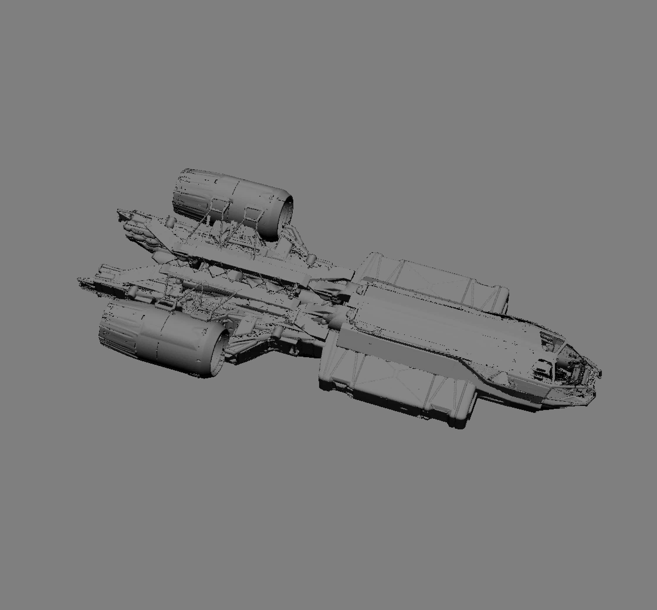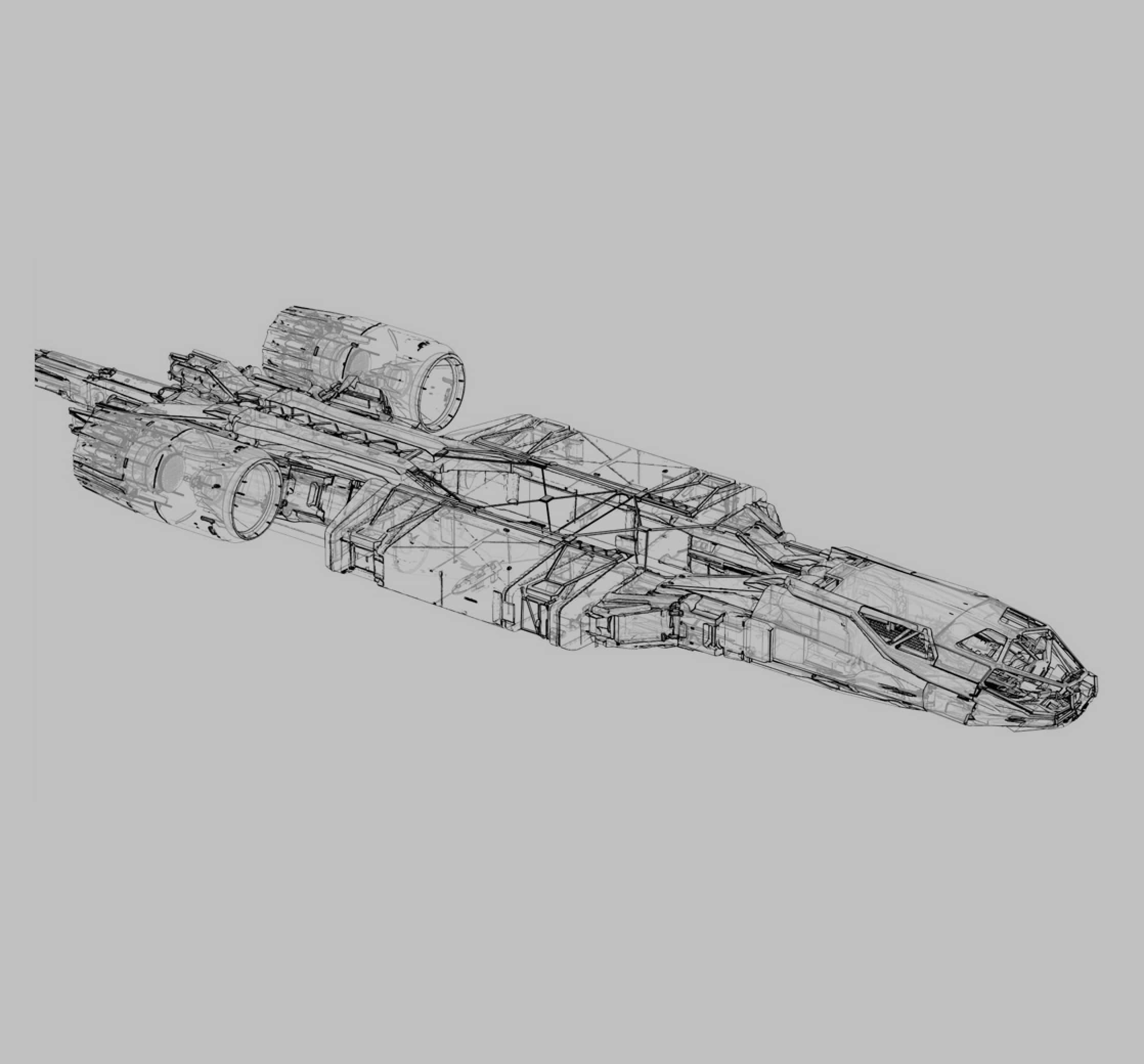 ↪︎Within our team, we ended up calling this asset “frankenshuttle”. The ship model ended up changing hands several times before reaching its final look—too much work was required for just one modeler. One of us would start working on the asset, and then be forced to hand off the work do to other, commercial projects piling up. So the frankenshuttle kept getting passed around between team members.