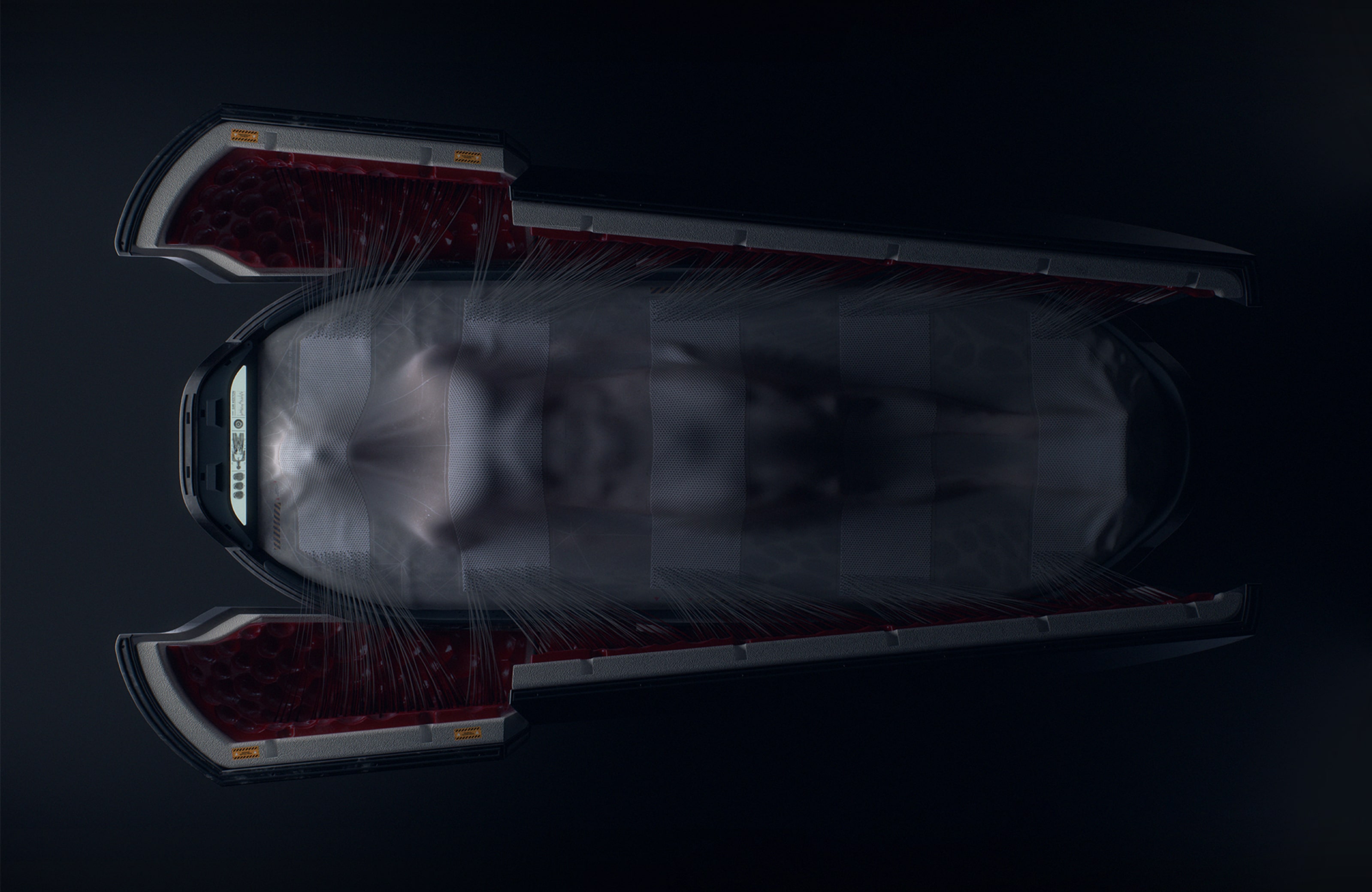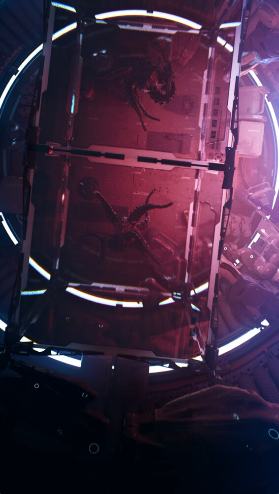 ↪︎We thought we’d start and end the film with siri lying in the pod/ coffin. We spent quite some time working out the details to make sure the close-ups looked good. We noticed that cryopods in movies/games all tend to have more or less the same design. But you had this really interesting concept of “undead” bodies, instead of just frozen ones.