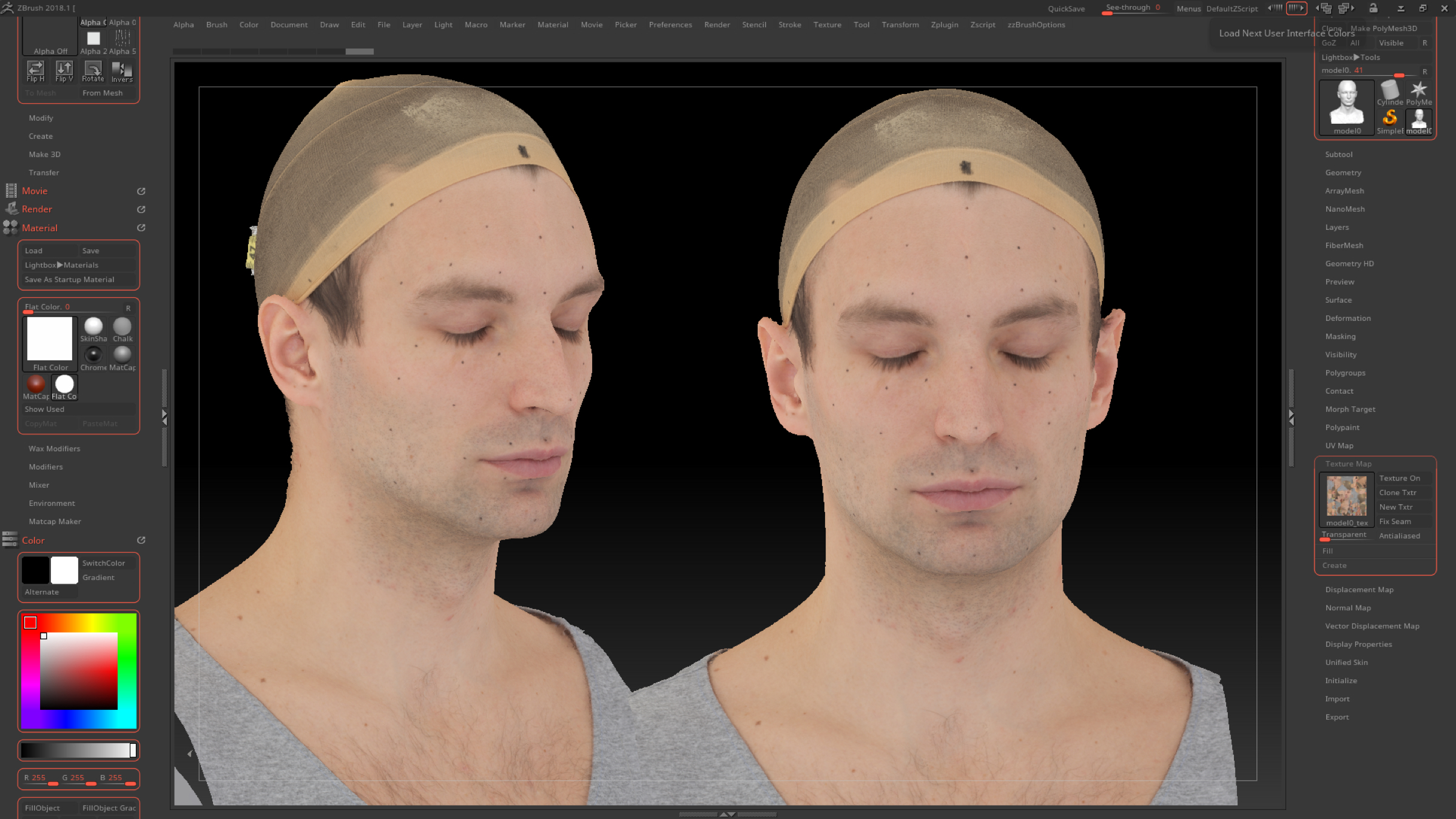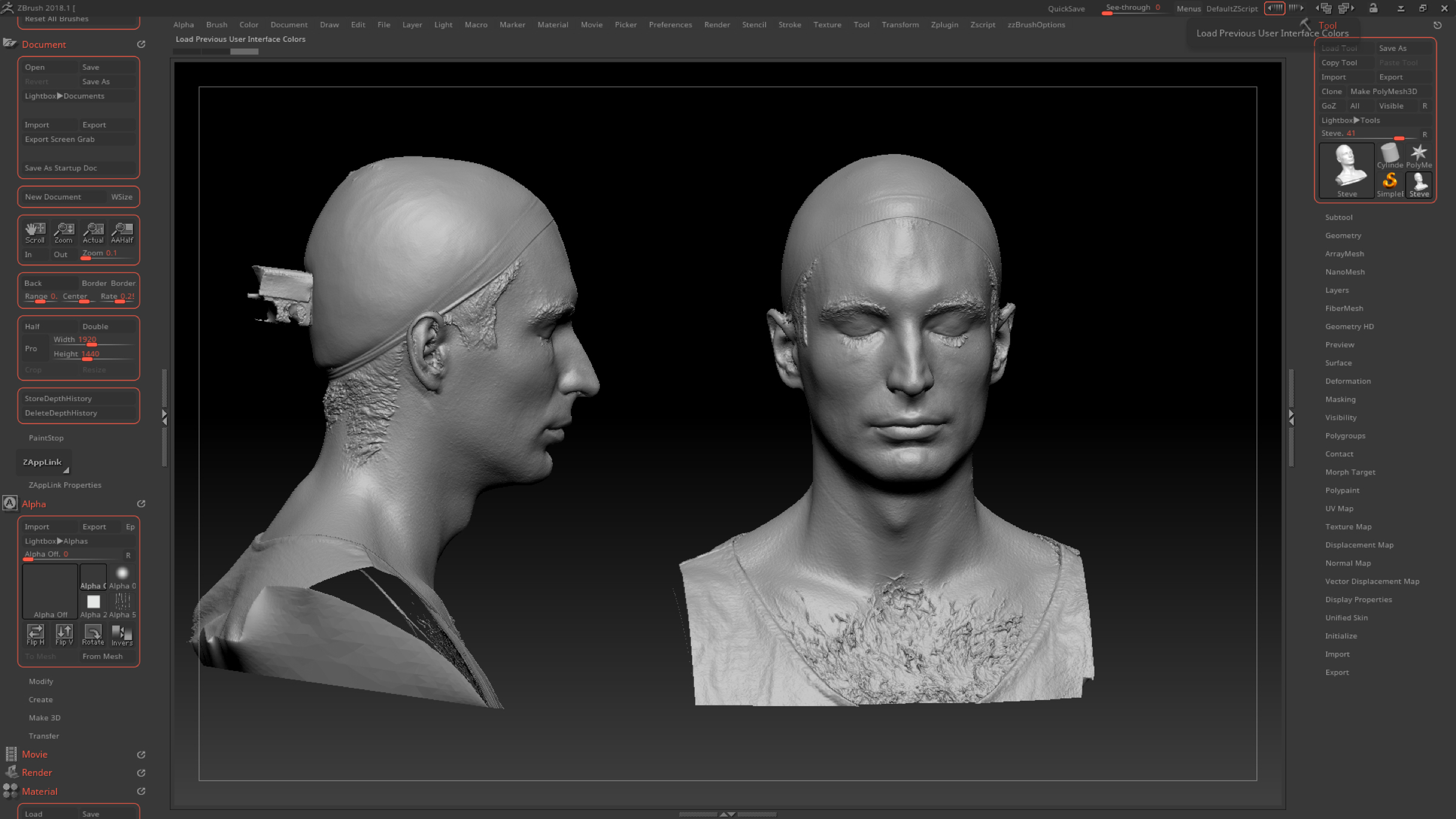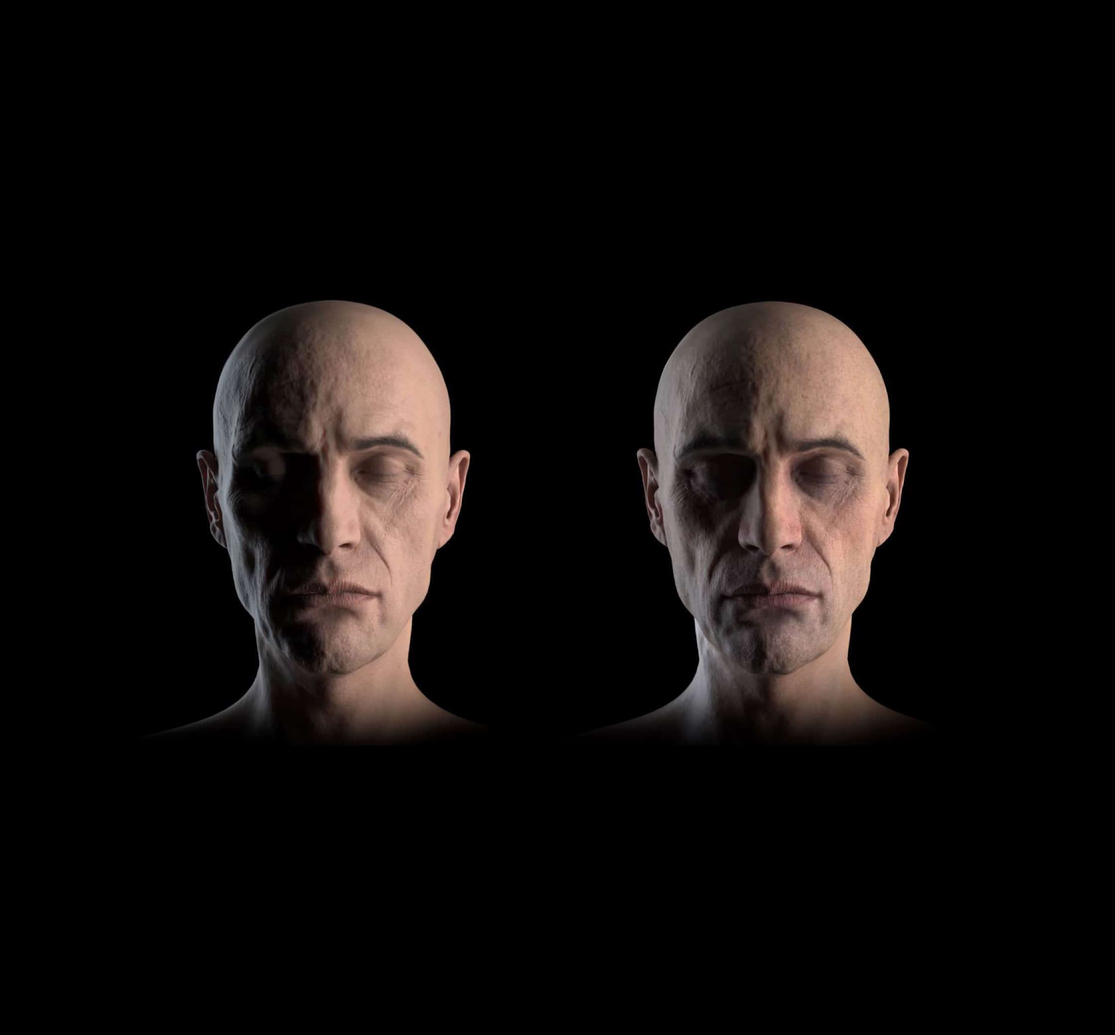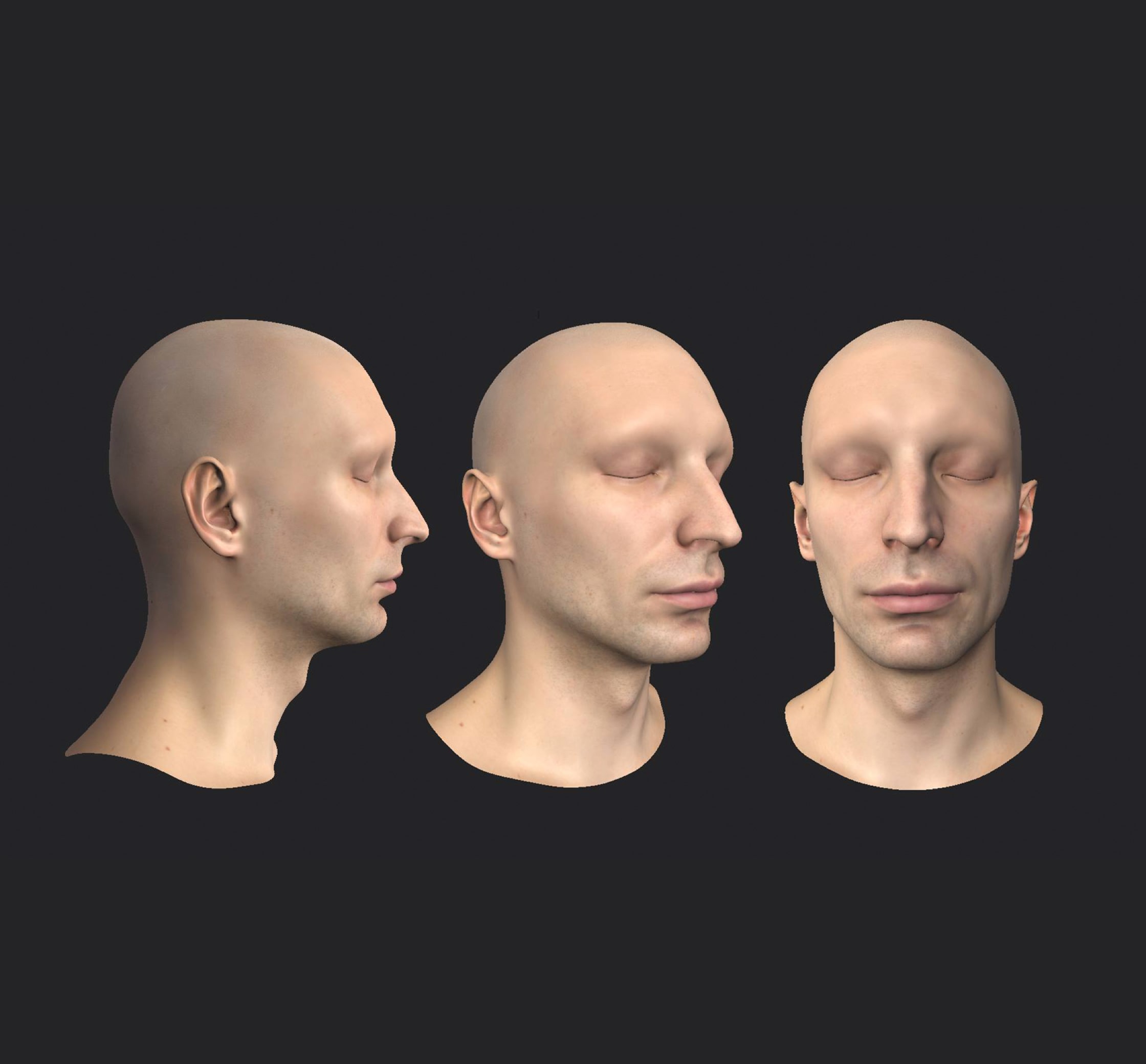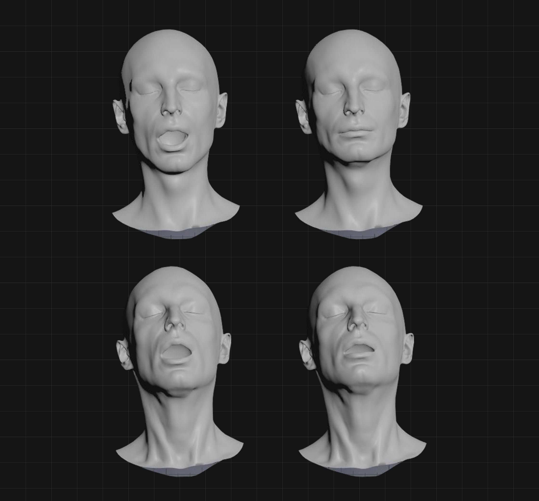 ↪︎After some manual clean up of the textures and a bit of retopology the model was ready for animation. The sculptor ended up having to make a few more versions of the model in order to give us all the necessary face and neck positions demanded by the script.