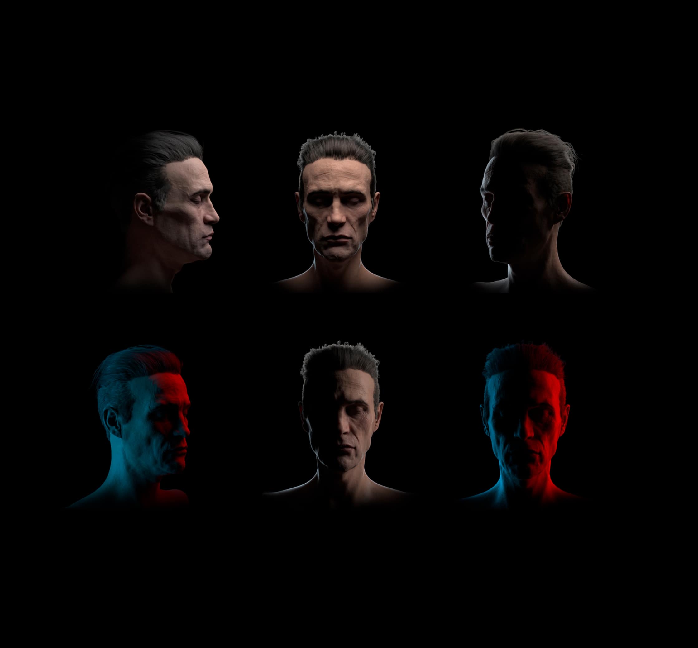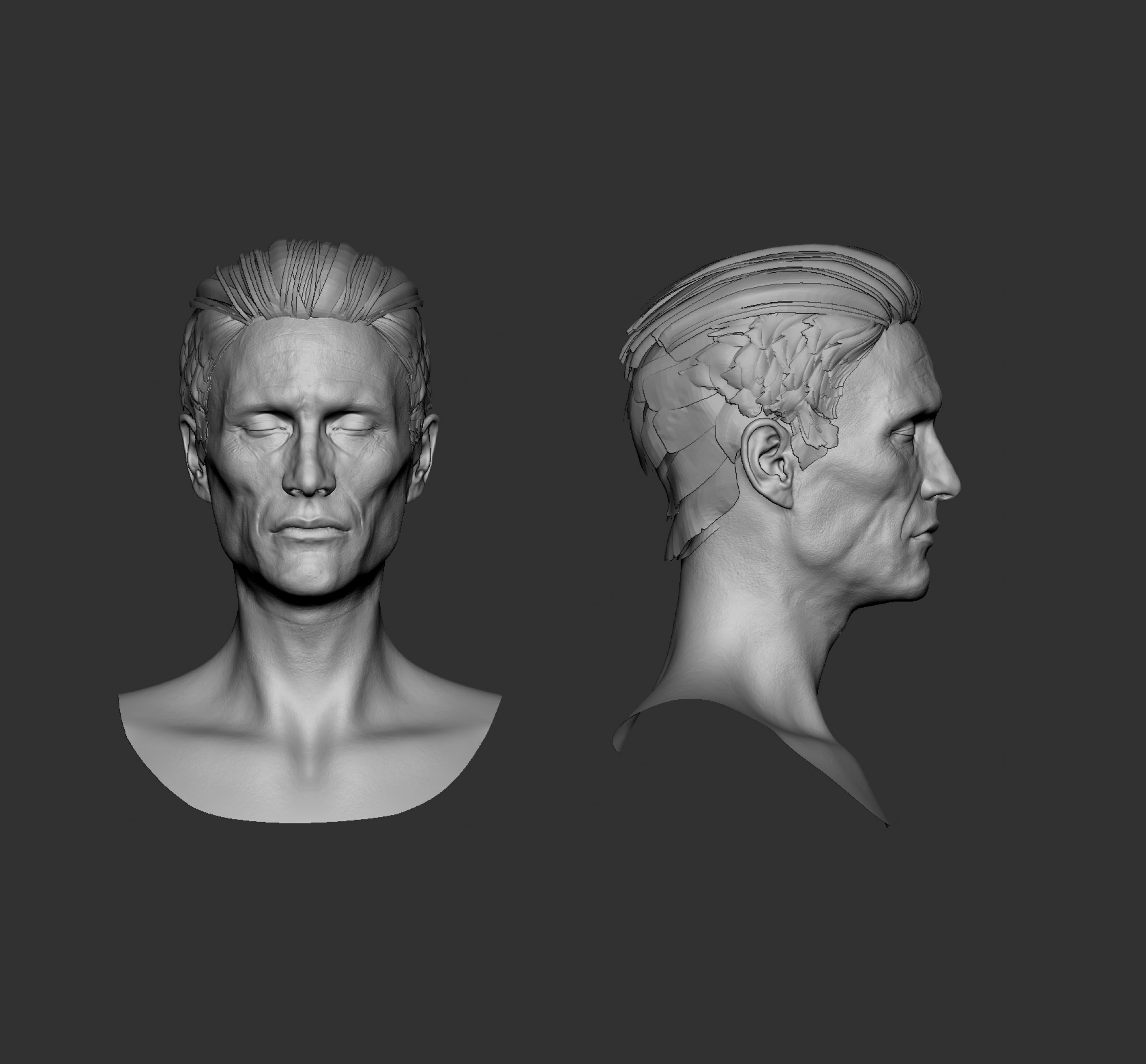 ↪︎We began modeling Sarasti off the concept-art, but then found an AMA of Peter Watts’ on Reddit, in which he mentioned Mads Mikkelsen as the perfect actor for Sarasti’s part. This made our job a lot easier - we took Mads’ appearance as our starting-off point and then tweaked it to fit the vampiric traits described in the book.
