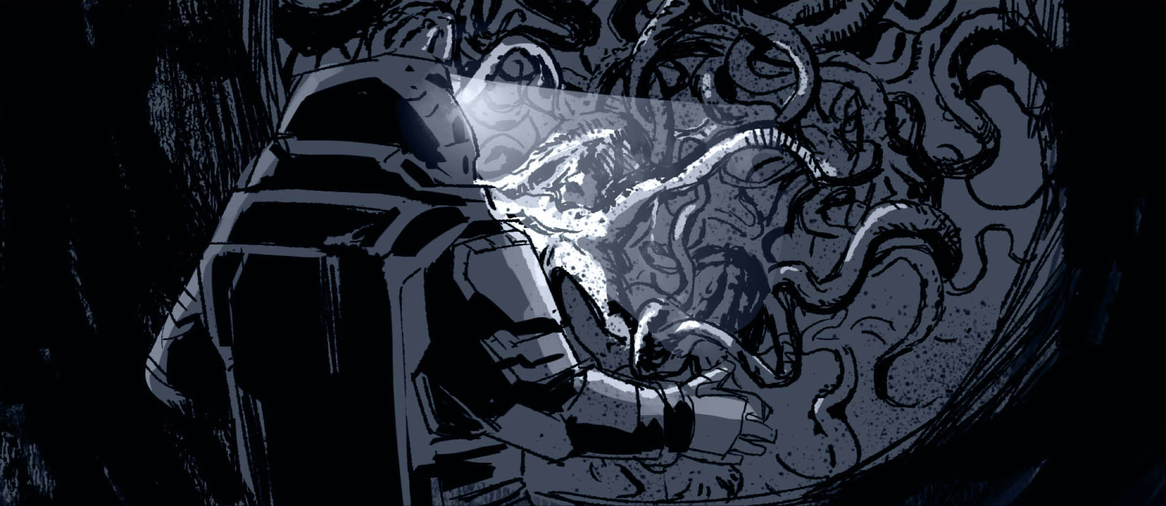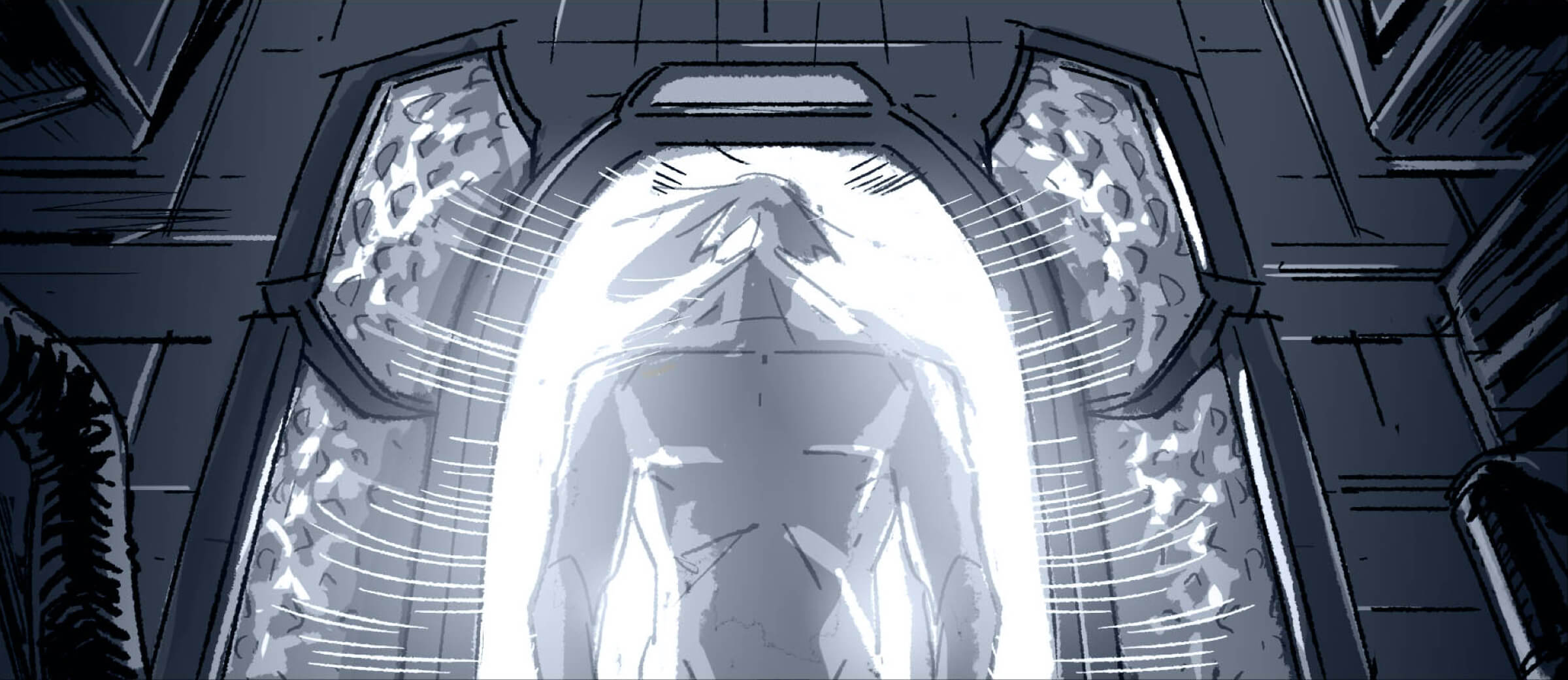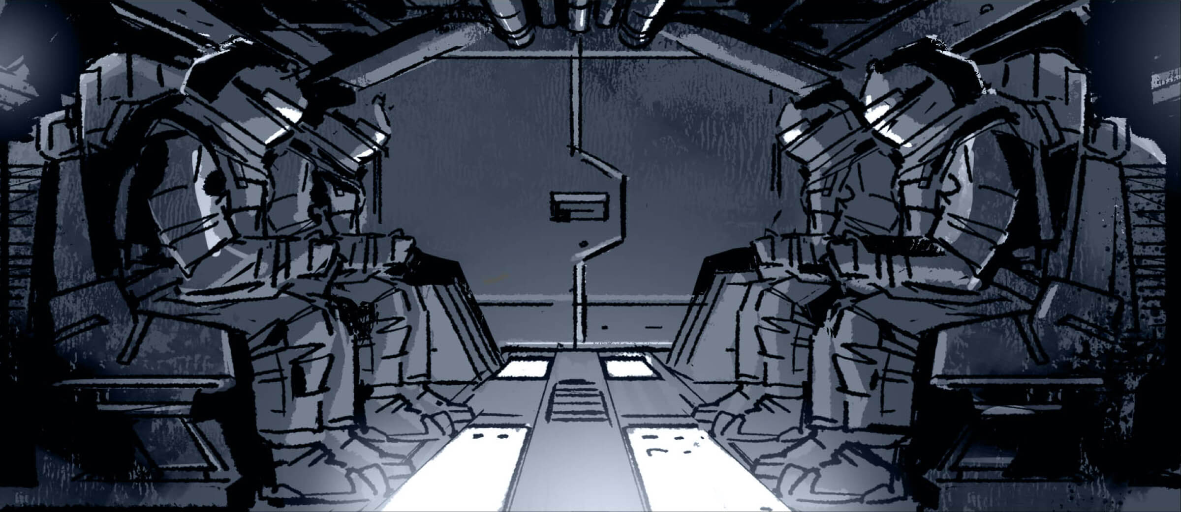 ↪︎After that the overarching structure of the story became clearer - we were going to begin and end on the hero waking from cryo-sleep. In between these framing scenes, we would focus on his memories, which were going to be shown in reverse order - starting with the final battle between Theseus and Rorschach and ending on the first appearance of the Fireflies in the sky of the Earth, the moment when humanity discovered that we are not alone in this universe.