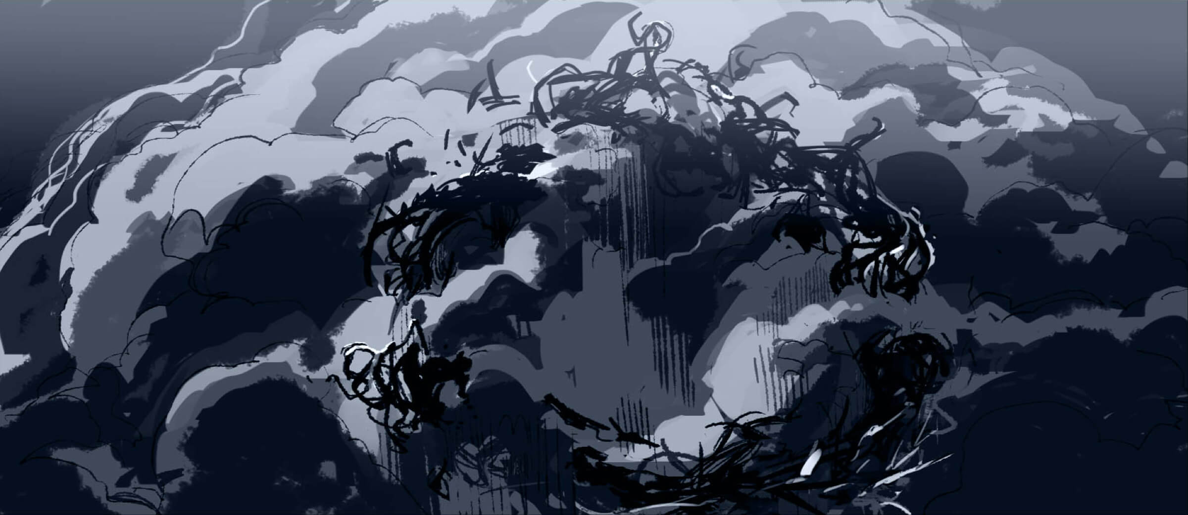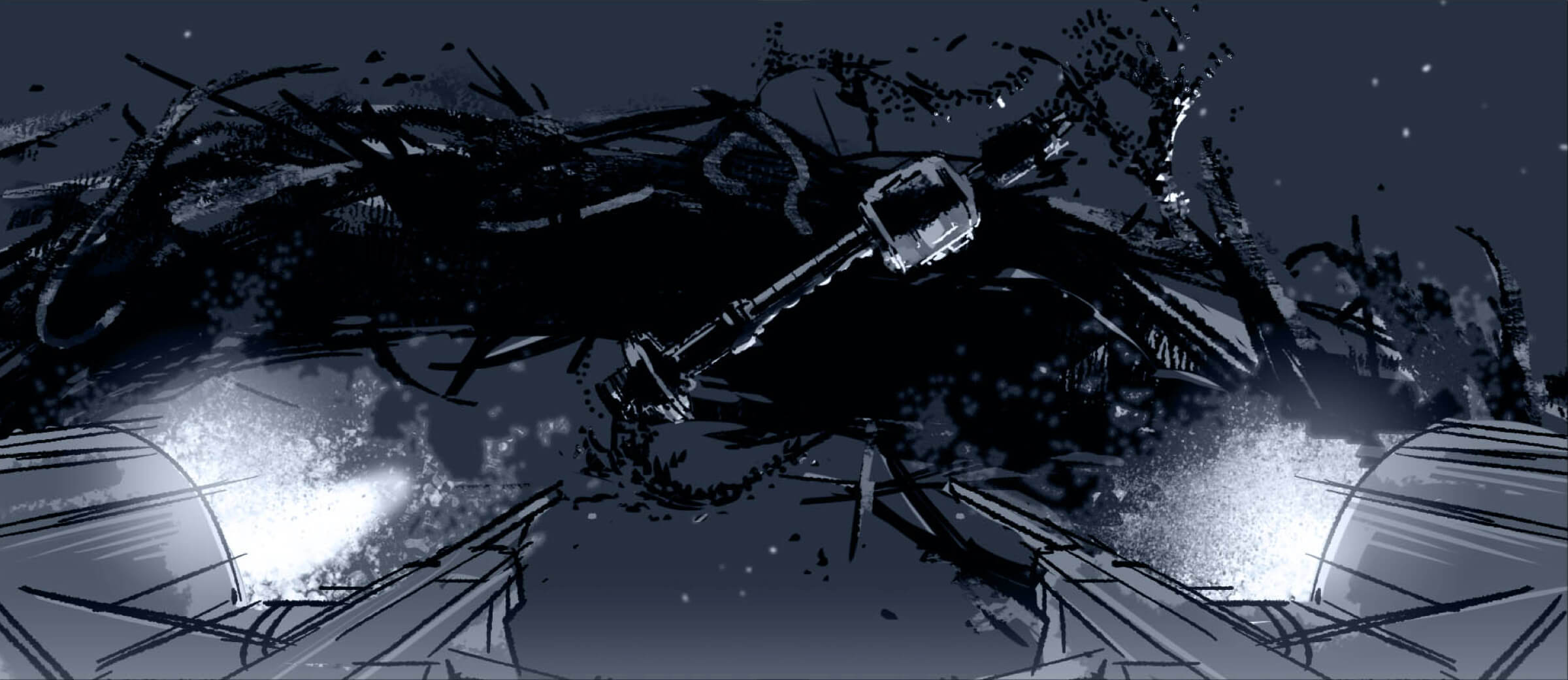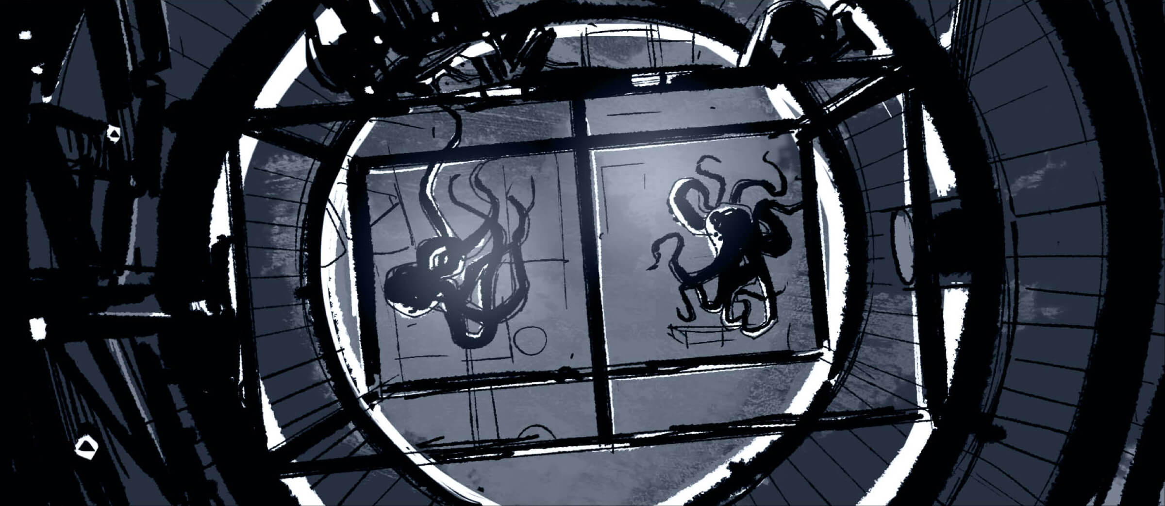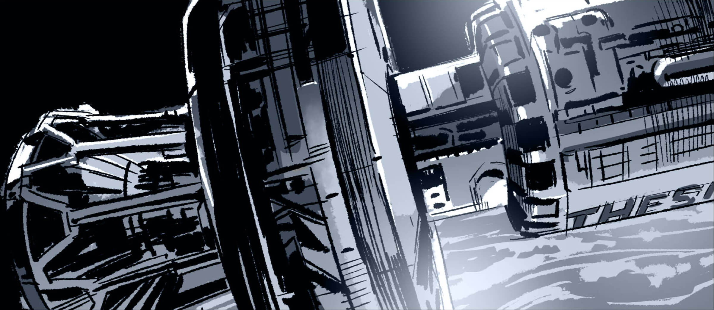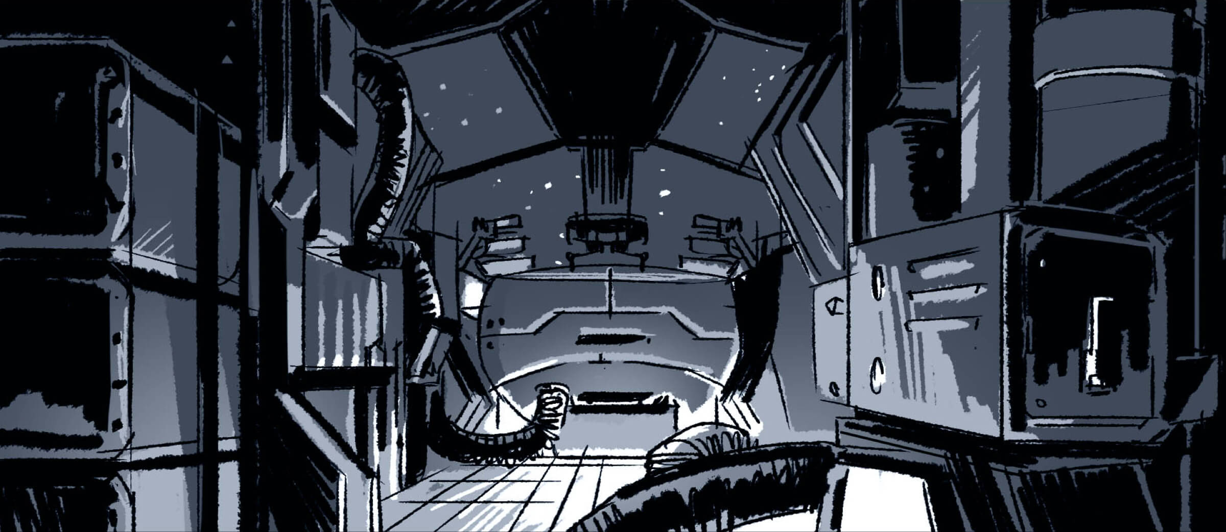 ↪︎I was lucky enough to get to work with an extremely talented storyboard artist in the early stages of the project. Now that we have the final short, it’s curious to see how closely every shot resembles her initial sketches, made 4 years earlier.
